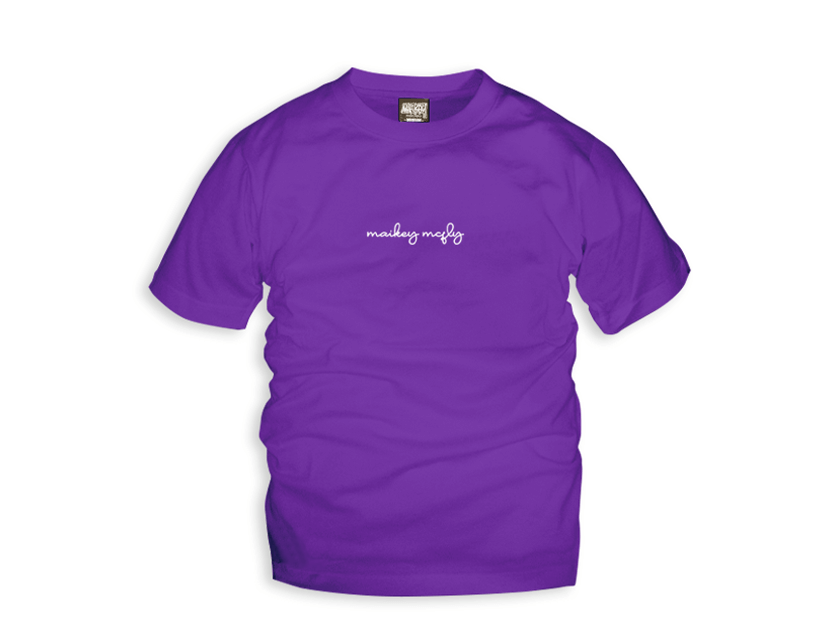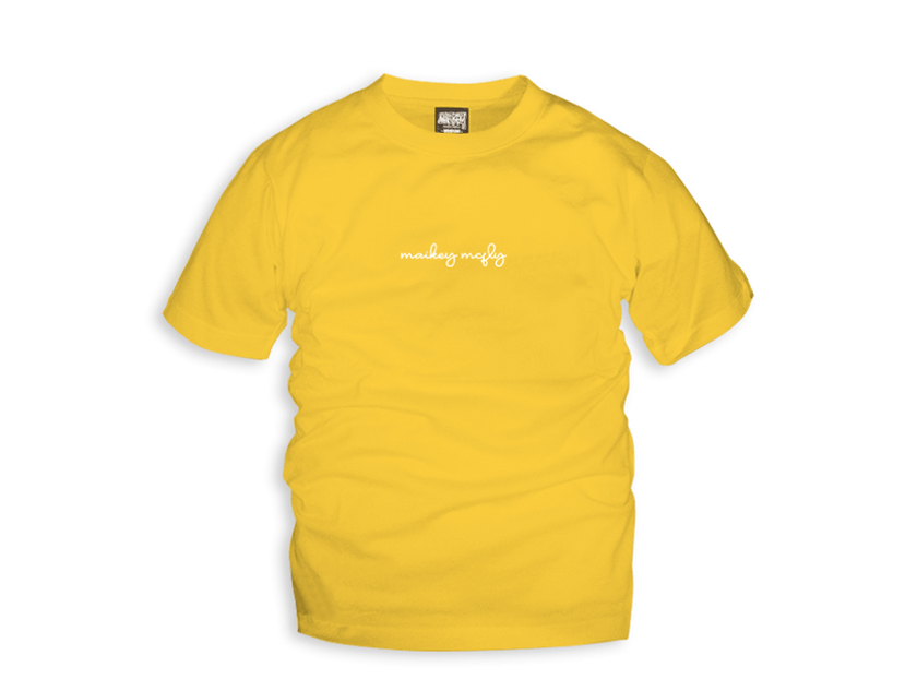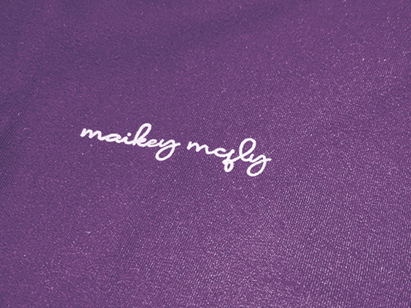 「CURSIVO(クルシーボ)」とは「cursive style=筆記体」を表すスペイン語。丸いタッチの文字で「maikey mcfly 」とデザインされたロゴを胸元にプリント。他のアイテムとの組み合わせでクールにも可愛くも変化する味のあるモデル。
